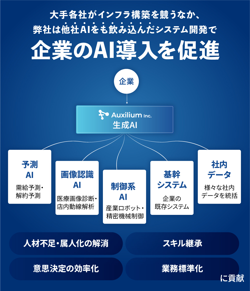 弊社は単なる開発ベンダーではなく「事業パートナー」として、企業ごとのAI活用を支援していきます。