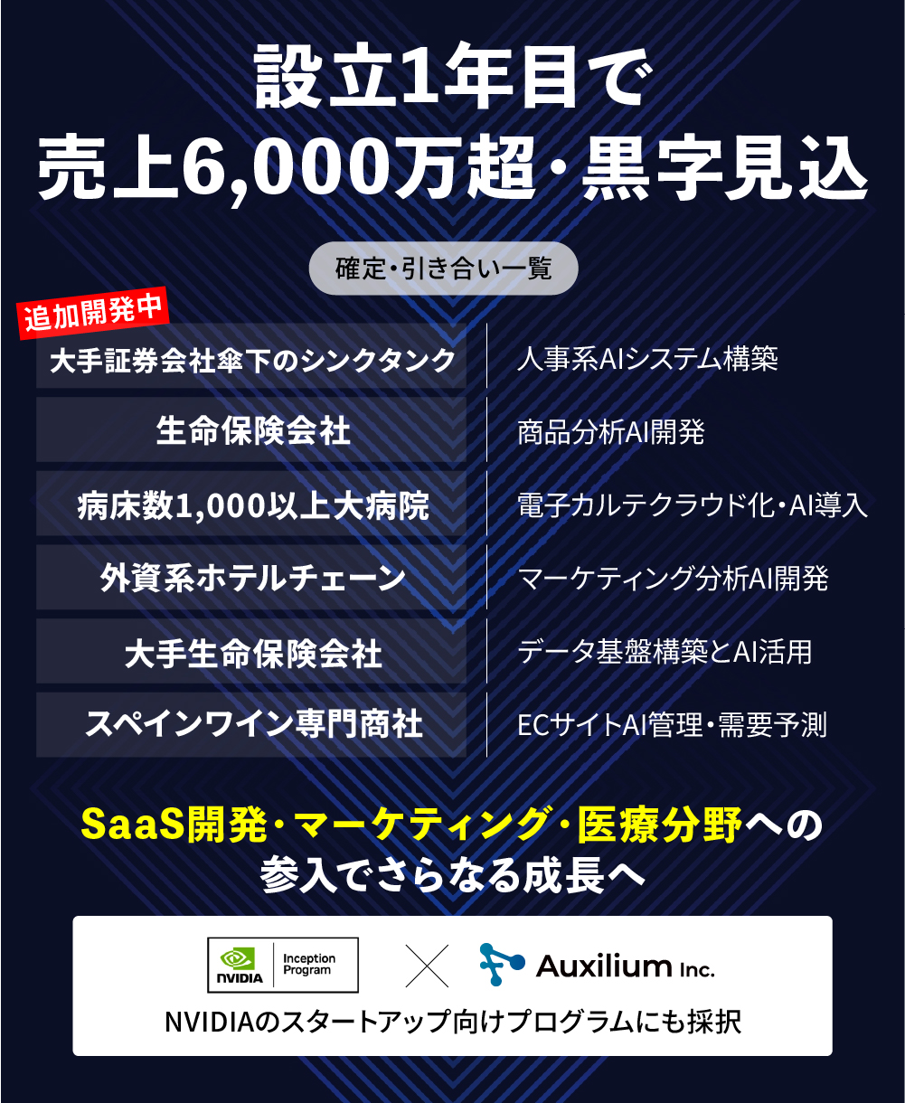 これまでの成功事例を起点に、受託開発やSESの新規案件獲得が順調に進行しており、初年度から売上は6,000万円を超える見通しです。