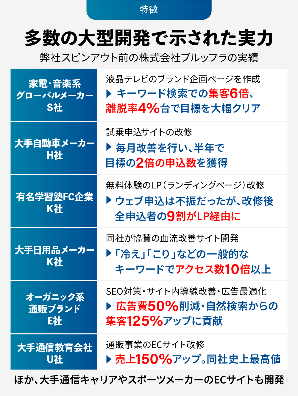 2009年に独立し、ECサイト構築やウェブマーケティングを支援する株式会社ブルッフラを設立。電通時代の実績や評判から、メガバンクや大手通信教育会社など、多くの大手企業のウェブサイト構築および事業成長を支援してきました。